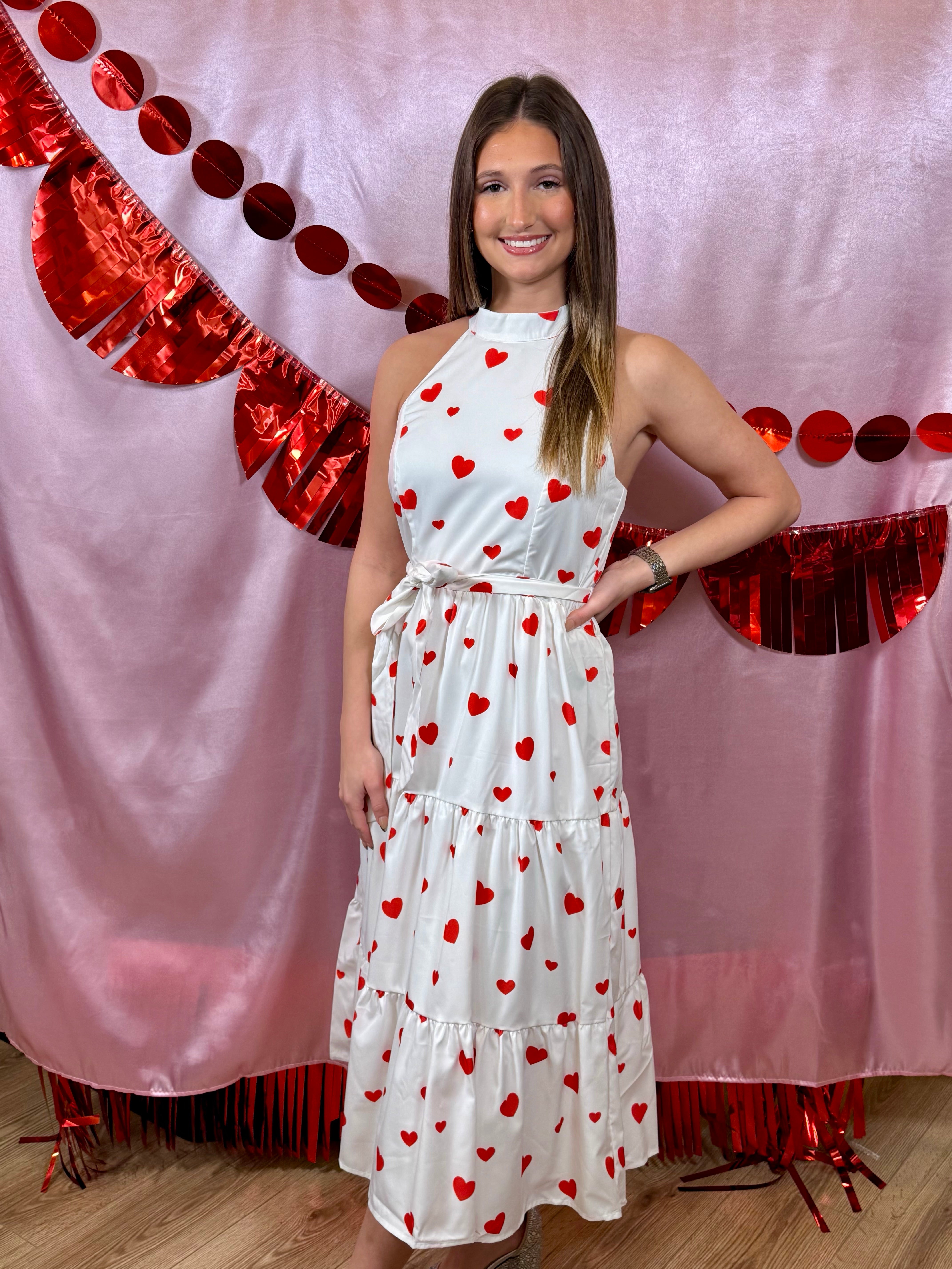Fall head over heels in love with the enchanting Valentine Heart Print Midi Dress, a quintessential piece for Valentine's Day and beyond. This charming dress features a playful all-over heart print that is sure to make a statement and spread joy wherever you go. Whether you are dressing it up for a romantic date night or wearing it casually for a daytime event, this dress promises comfort, style, and a touch of whimsy
