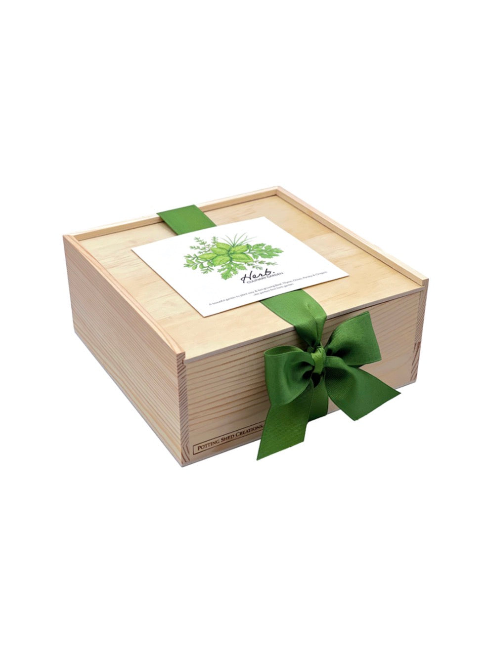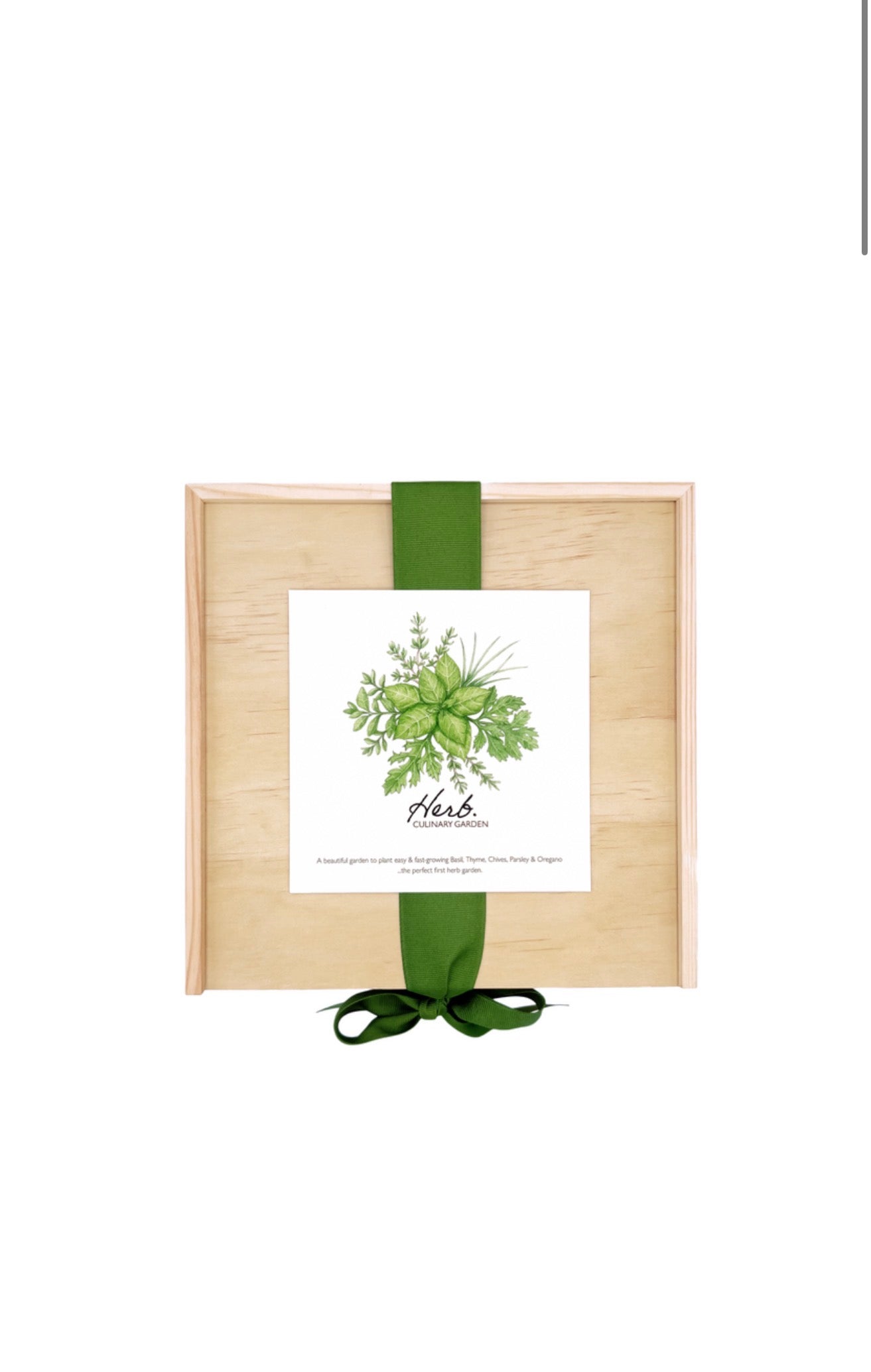 includes | organic seed; Genovese Basil, Italian Parsley, Italian Oregano, Culinary Chives, Thyme . 5 coir seedling pots to start indoors (additional seed included to direct sow or to succession sow) . drip tray for seedling pots . OMRI listed seed-starting soil . wooden garden stakes, herb shears . easy-follow directions for starting seed, along with harvest tips . all nestled in a lovely pine box with sliding lid and finished with a hand tied with grosgrain ribbon...a gift ready to give!