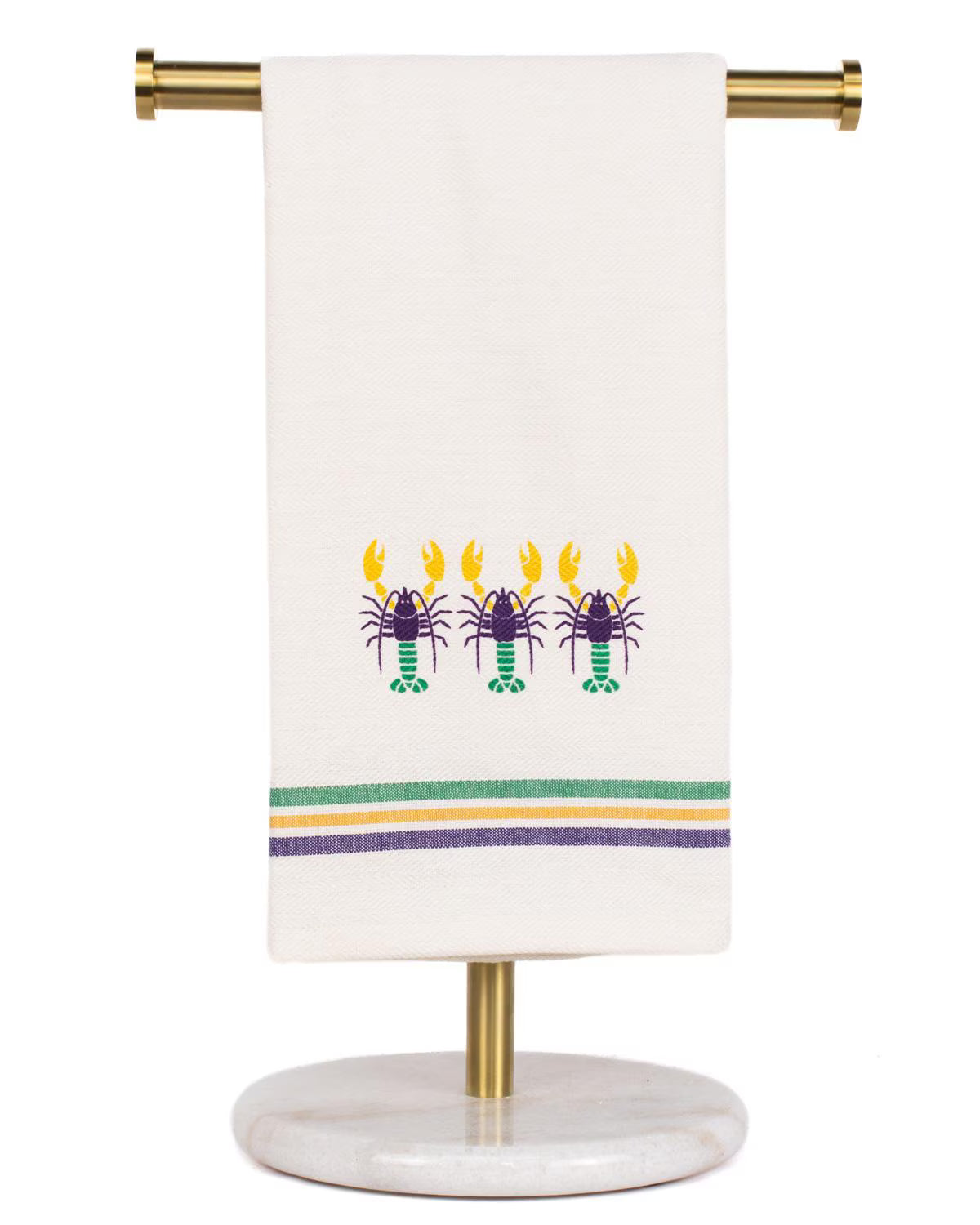 Celebrate the flavors of Mardi Gras with the "Mardi Crawfish" hand towel. This cream-colored towel features playful multi-tone crawfish designs, making it a fun and festive addition to your kitchen or bathroom during the season.