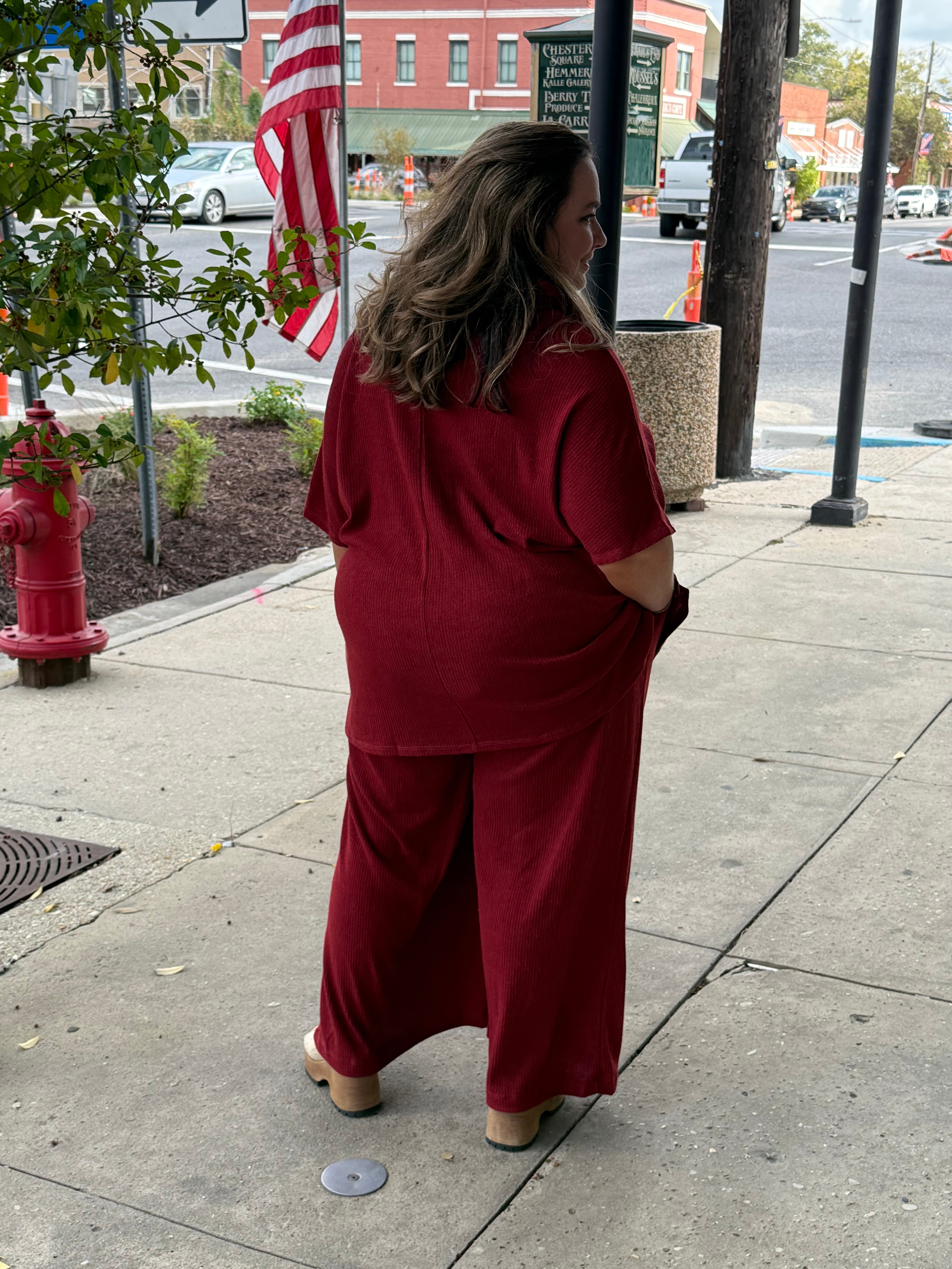 Introducing our Relaxed Wine Pants Set, the perfect combination of style and comfort. Made from high-quality material, these pants provide a relaxed fit while still looking chic. Whether you're lounging at home or out for a night on the town, these pants will keep you feeling and looking great. Elevate your wardrobe today with our Relaxed Wine Pants Set.