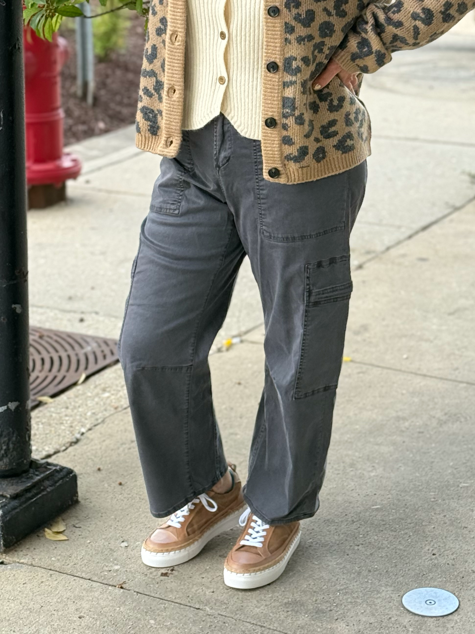In love with the Lasso high rise barrel fit baggy cropped pants in charcoal color, the epitome of elegance in women's fashion.