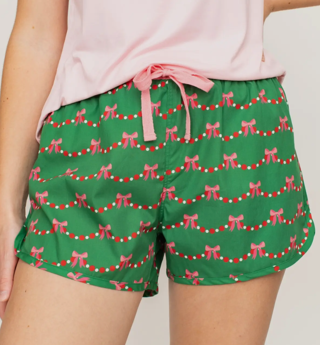 Introducing Bow Garland Lounge Shorts - the perfect combination of style and comfort. Made with high-quality fabric, these shorts feature a charming bow garland design that will elevate any lounge look. Relax in luxury and add a touch of elegance to your wardrobe with these lounge shorts.
