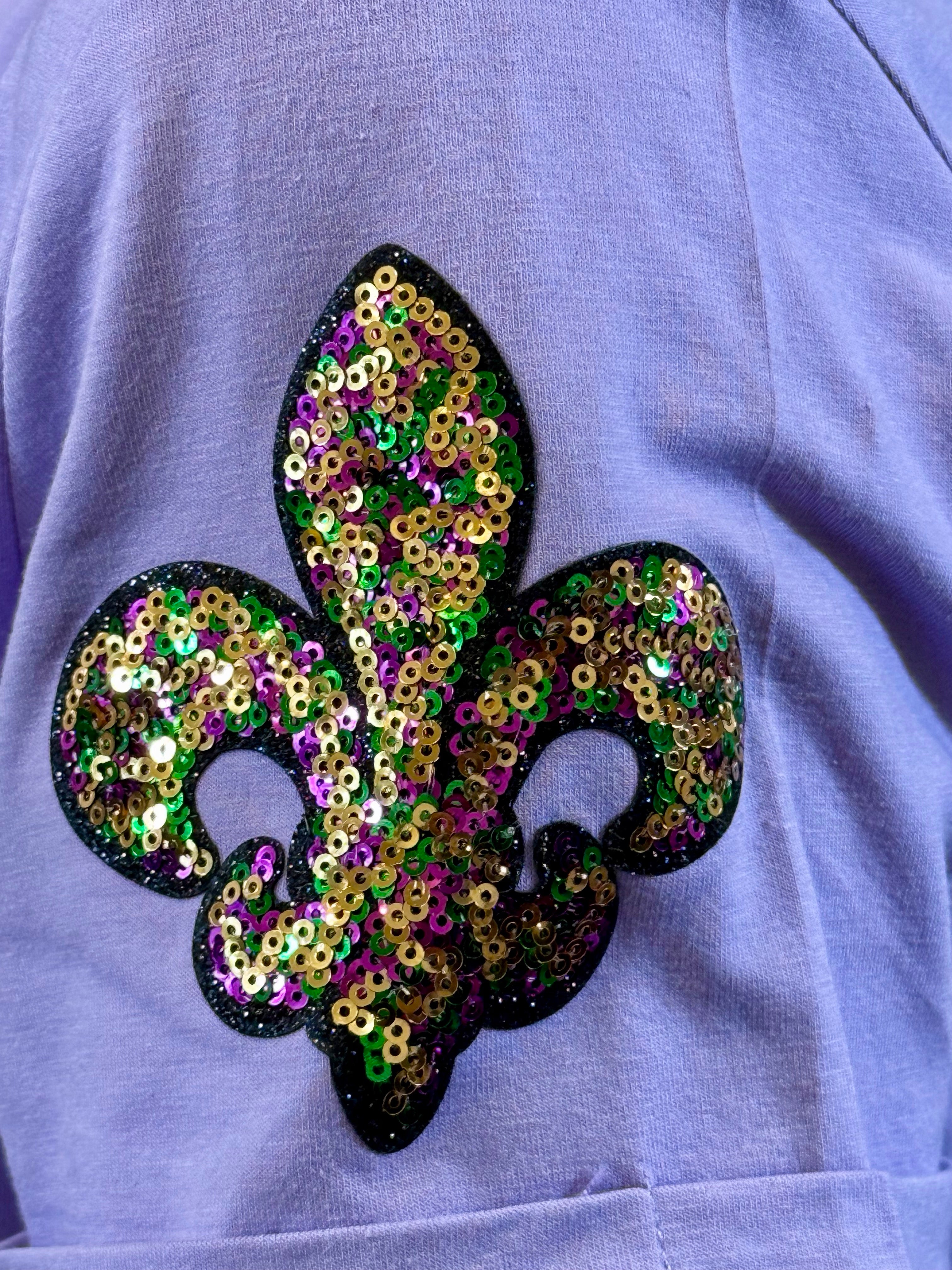Add a touch of sparkle to your wardrobe with our MG Sequin Fleur De Lis Tee. The elegant sequin design showcases a timeless symbol for a touch of sophistication. Perfect for any occasion, this tee is sure to make a statement and elevate any outfit.