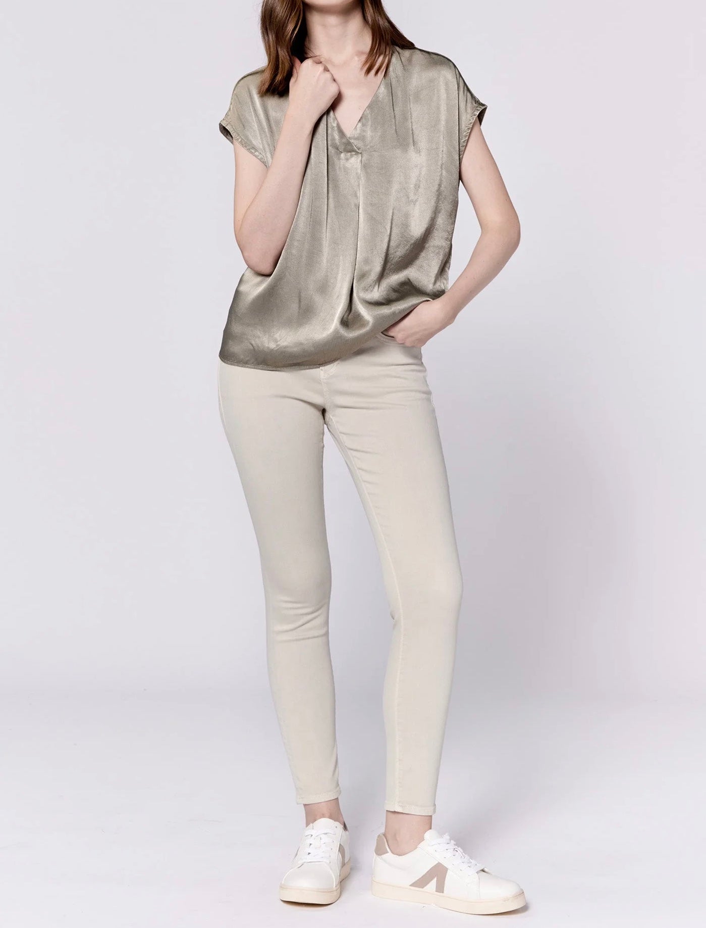 Embrace effortless style with the Kristen vneck short sleeve relaxed fit top, an essential piece in women's fashion wardrobe.
