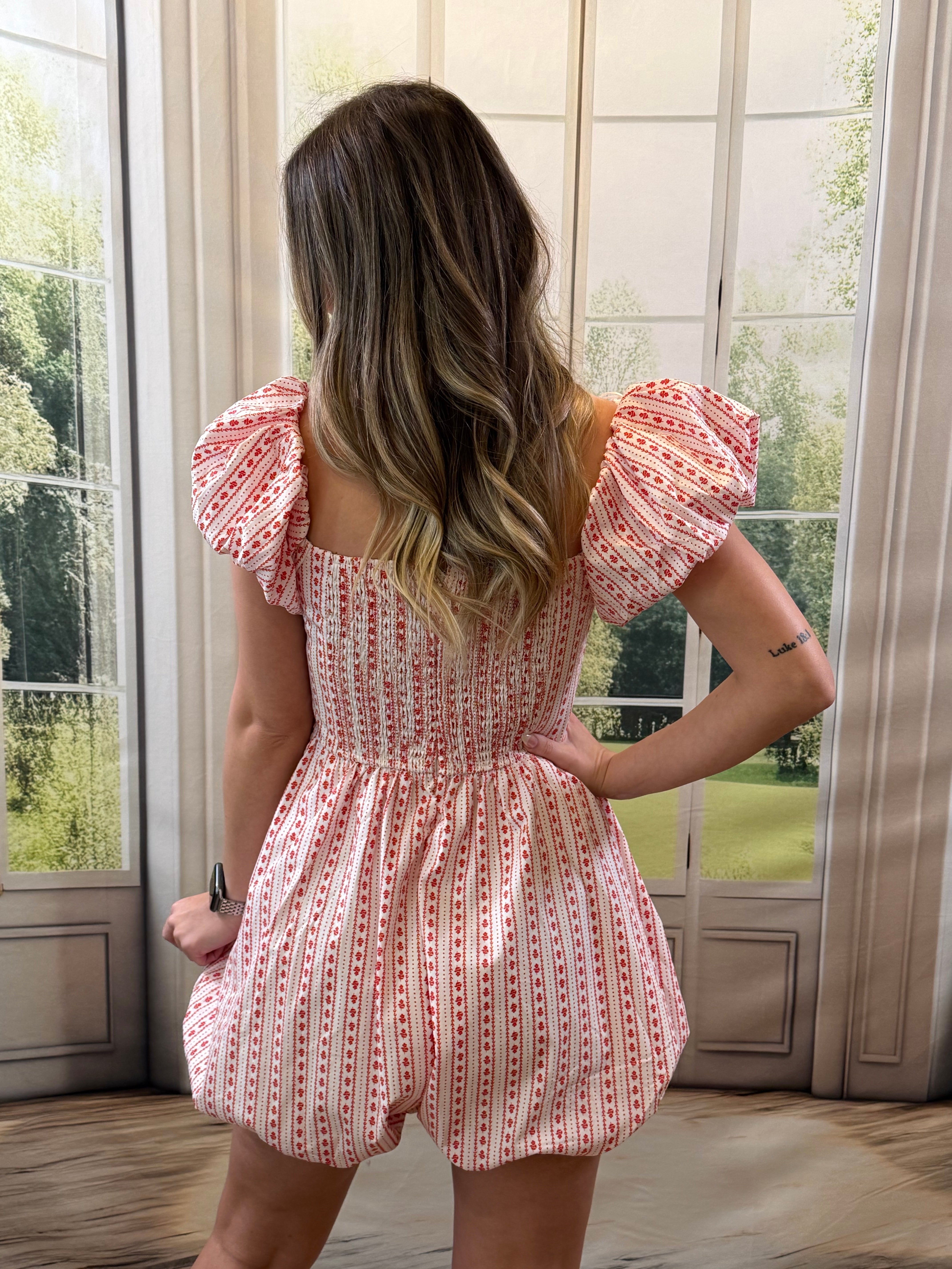 The Flower Stripe Bubble Romper combines a floral stripe pattern with a structured bubble design, offering both aesthetic appeal and comfort. This garment is designed for ease of movement and breathability, making it suitable for warm weather. Its versatile style allows for various occasions, ensuring practicality and fashion.